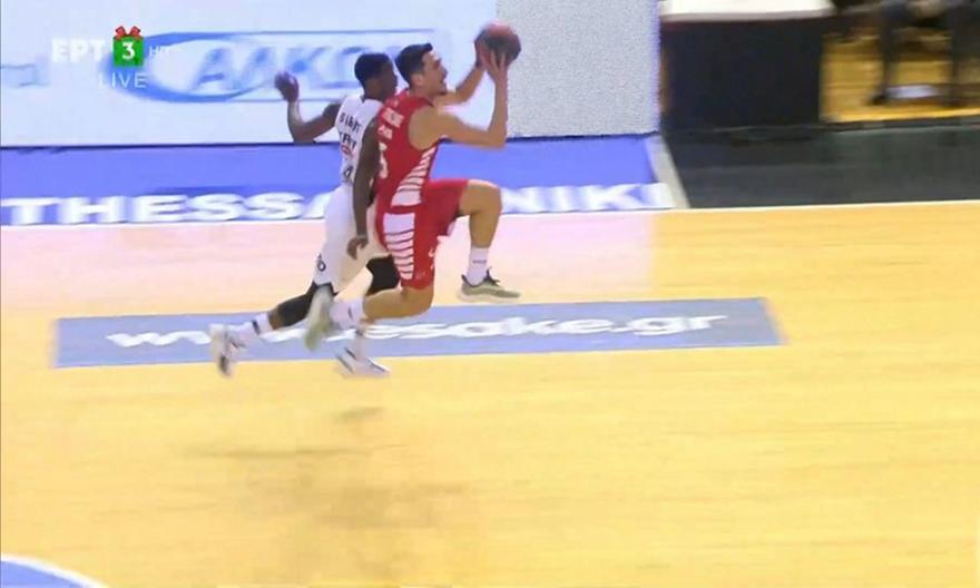 Με τον καλύτερο τρόπο έκλεισε το ημίχρονο ο Ολυμπιακός. Ο Γιαννούλης Λαρεντζάκης εκμεταλλεύτηκε το γεγονός ότι ο Τζόρνταν Σίμπερτ είχε την πρόθεση να του κάνει το φάουλ που είχε να δώσει ο ΠΑΟΚ, πέταξε την μπάλα από μακριά και κέρδισε τρεις βολές.