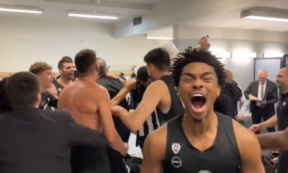 Παίκτες και μέλη του προπονητικού τιμ και του σταφ έστησαν τρελό πάρτι, με τον Άρη Λυκογιάννη να γίνεται ένα με τους παίκτες του και τον Τζέιλεν Χαντς σε πρώτο... πλάνο να δίνει ρέστα.