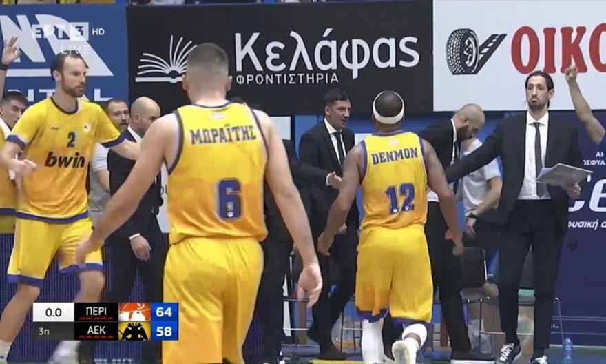 Σκορ και θέαμα στην τρίτη περίοδο της αναμέτρησης Περιστέρι bwin-ΑΕΚ, με τον Δημήτρη Μωραΐτη να σκοράρει συνεχόμενα ανάποδα λέι-απ και τους Περσίδη, Ντένμον να ευστοχούν σε μεγάλα σουτ τριών πόντων!