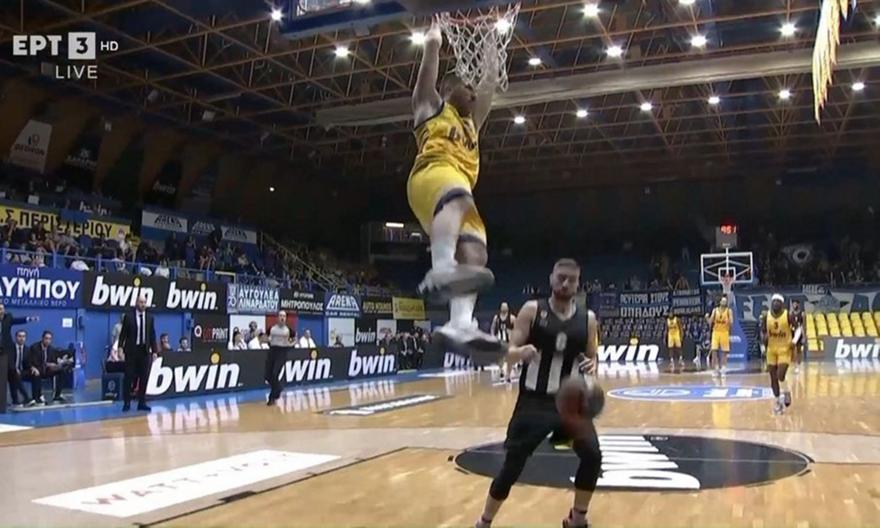 Εντυπωσιακή φάση για το Περιστέρι bwin κόντρα στον ΠΑΟΚ, με τον Μωραΐτη να κλέψει και να καρφώνει στην μπασκέτα των Θεσσαλονικιών!