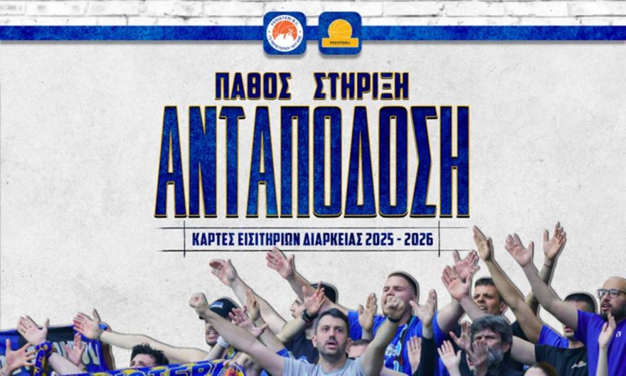 Τα εισιτήρια θα διατίθενται online μέσω της επίσημης ιστοσελίδας μας με κλικ εδώ, του δικτύου πωλήσεων της www.ticketmaster.gr, καθώς και από τα γραφεία της ΚΑΕ Περιστερίου (Κλειστό Γυμναστήριο «Ανδρέας Παπανδρέου», Τζων Κέννεντυ & Γιαννιτσών 81Α, Περιστέρι, 12131), καθημερινά από τη Δευτέρα 15 Σεπτεμβρίου 2025 (Δευτέρα – Παρασκευή) και ώρες 17:00-20:00.