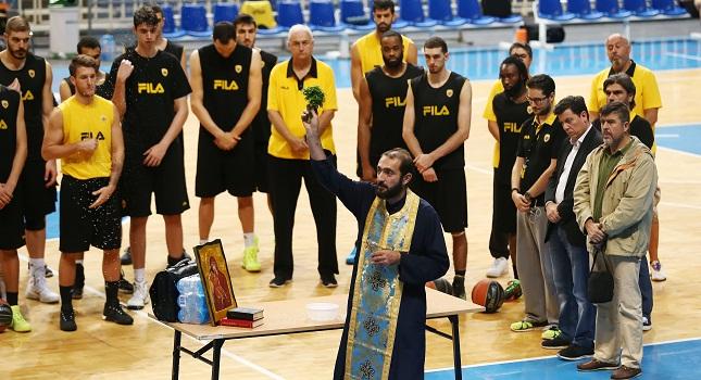 Σήμερα το απόγευμα, τελέστηκε στο ΟΑΚΑ ο καθιερωμένος αγιασμός ενόψει της έναρξης των επίσημων υποχρεώσεων για τη νέα σεζόν, με τους παίκτες και το προπονητικό επιτελείο της «Ένωσης» να παίρνουν την ευλογία του Αρχιμανδρίτη Παντελεήμονα, από τον Ιερό Ναό Κοιμήσεως της Θεοτόκου στη Νέα Φιλαδέλφεια.