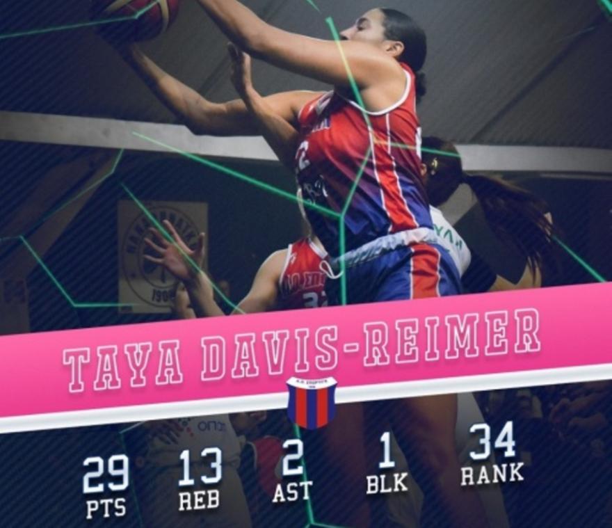 Η Τάγια Ρέιμερ στο παιχνίδι του Σπόρτιγκ με τον ΠΑΣ Γιάννινα για την 20ή αγωνιστική της Α1 μπάσκετ γυναικών και τη νίκη της αθηναϊκής ομάδας με 88-79 είχε 29 πόντους, 13 ριμπάουντ, 2 ασίστ, 1 κλέψιμο, 1 τάπα, συγκέντρωσε 34 βαθμούς στο σύστημα αξιολόγησης και αναδείχθηκε MVP της αγωνιστικής.