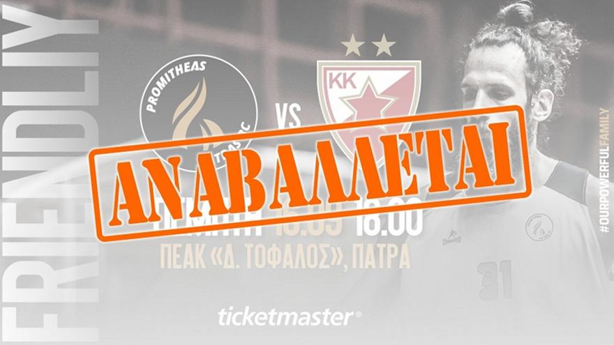 Ο Προμηθέας ανακοίνωσε πως αναβλήθηκε το φιλικό με τον Ερυθρό Αστέρα, που ήταν προγραμματισμένο για την προσεχή Πέμπτη (16/9).
