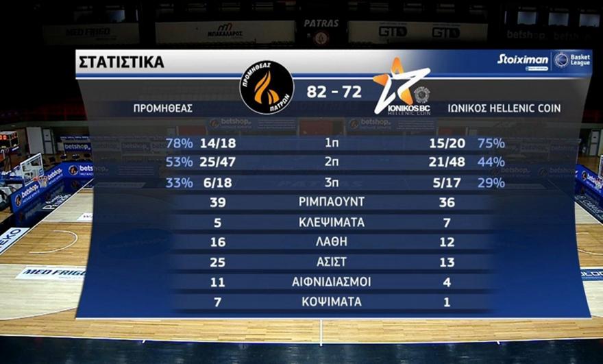Δυναμική επιστροφή στη δράση έκανε ο Προμηθέας, έπειτα από την απραξία τριών εβδομάδων λόγω κρουσμάτων κορωνοϊού, καθώς νίκησε άνετα 82-72 τον Ιωνικό, για τη 19η αγωνιστική της Stoiximan Basket League.