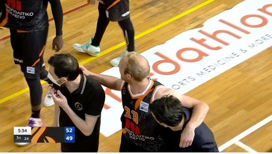 Ο Κόνερ Φράνκαμπ έπαθε υπερέκταση στο πόδι σε μια ανύποπτη φάση στον αγώνα Λαύριο-Προμηθέας στο τρίτο δεκάλεπτο, αλλά επέστρεψε στο παρκέ στην τέταρτη περίοδο.