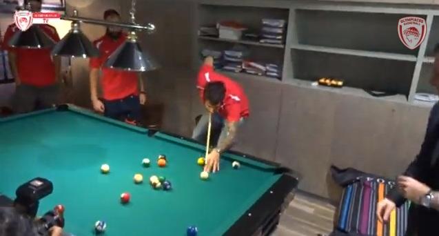 Οι παίκτες του Ολυμπιακού που έδωσαν το «παρών» στην παρουσίαση της συμφωνίας της ΚΑΕ με την Air Fast Tickets βρήκαν την ευκαιρία σε ένα διάλειμμα να παίξουν μπιλιάρδο.