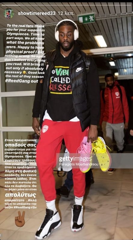 «Στους πραγματικούς οπαδούς… Σας ευχαριστώ για την υποστήριξή σας στον Ολυμπιακό. Ήρθε η ώρα να χωρίσουν οι δρόμοι μας. Όλοι ξέρουμε ποια ήταν τα προβλήματα. Είμαι χαρούμενος που έχω τις αποδείξεις ότι δεν έκανα κάτι λάθος. Οπότε, μην πιστεύετε όλα όσα διαβάζετε. Θα βγουν προς τα έξω μόνο αν κριθεί αναγκαίο. Καλή τύχη στο υπόλοιπο της σεζόν», έγραψε στο Instagram.