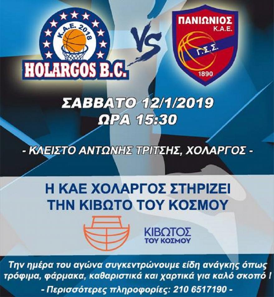 Για την 13η αγωνιστική της Betshop Basket League 2018-19, ο HolargosBC υποδέχεται τον Panionios B.C. αυτό το Σάββατο 12/1, στις 15:30?, στο κλειστό "Αντώνης Τρίτσης" !