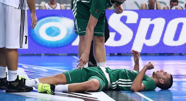 Ο 21χρονος γκαρντ είχε μια άσχημη πτώση στο παρκέ σε προσπάθειά του για διείσδυση στο δεύτερο μέρος του φιλικού με την Παρτιζάν.