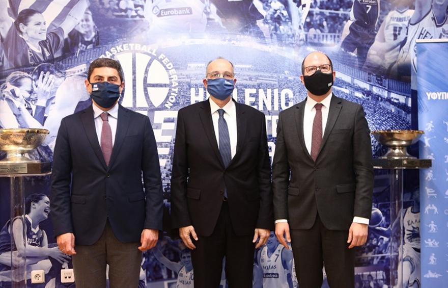 Μετά το τέλος της συνομιλίας των τριών, το λόγο πήρε πρώτος ο οικοδεσπότης πρόεδρος της ΕΟΚ: «Κύριε υπουργέ, κύριε γενικέ γραμματέα της FIBA σας εύχομαι χρόνια πολλά και σας ευχαριστώ που επισκεφτήκατε τα γραφεία της Ελληνικής Ομοσπονδίας Καλαθοσφαίρισης το σπίτι του μπάσκετ στην Ελλάδα. Χαίρομαι ιδιαιτέρως που συνυπάρχουμε στον ίδιο χώρο αυτές τις άγιες ημέρες με το ένα σπίτι μας το ελληνικό, που είναι το υπουργείο Αθλητισμού και με δεύτερο σπίτι μας το παγκόσμιο σπίτι μας που είναι η FIBA. Σήμερα είχαμε την ευκαιρία να βρεθούμε και να συζητήσουμε θέματα που έχουν να κάνουν με το παρών και το μέλλον του ελληνικού μπάσκετ. Είμαι πολύ χαρούμενος που είδα να υπάρχει τέτοια αγαστή συνεργασία μεταξύ των τριών θεσμών και η διάθεση από όλους μας για να πάει το μπάσκετ σε πολύ γρήγορους σταθερούς ρυθμούς εκεί που του αξίζει το οποίο δεν είναι μόνο οι καλύτερες ημέρες στην Ελλάδα αλλά η κορυφή της Ευρώπης. Και όχι μόνο της Ευρώπης αλλά και του κόσμου. Σήμερα είχαμε την ευκαιρία να συζητήσουμε και να εκφράσω τις απόψεις μου και στον υπουργό και τον γενικό γραμματέα και είμαι χαρούμενος που έχω να κάνω κάποιες ανακοινώσεις. Συζητήσαμε πολλά θέματα που μας απασχολούν πολύ. Το ένα έχει να κάνει με τις διοργανώσεις που αιτηθήκαμε στη FIBA για να πάρει η Ελλάδα και έγιναν αποδεκτές. Πέρα από το ευρωπαϊκό πρωτάθλημα νεανίδων που ήδη έχουμε αναλάβει για το 2022. Υπάρχει το U17 3X3 το οποίο θα γίνει στην Αθήνα το 2022 και η δεύτερη είναι το πανευρωπαϊκό U20 των Νέων το 2023 που θα πραγματοποιηθεί στην Κρήτη. Επειδή ο 2022 γιορτάζουμε τα 90 χρόνια της Fiba η Ελλάδα ως μία από οκτώ τα ιδρυτικά μέλη, την ιδρυτική μέρα 18 Ιουνίου 2022 θα υπάρξει μια μεγάλη εκδήλωση στο Καλλιμάρμαρο και θα υπάρξουν και άλλες εκδηλώσεις σε άλλα μέρη της Ελλάδας.