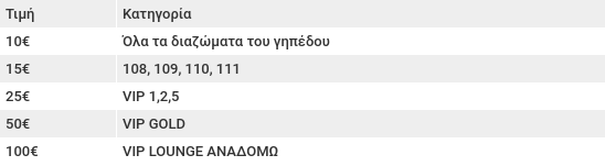 -Online μέσω του δικτύου της Ticketmaster από σήμερα μέχρι και την έναρξη του αγώνα.