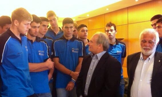 Ο κ. Ανδριανός έδωσε σε κάθε παίκτη της αποστολής ένα αναμνηστικό αγαλματίδιο τονίζοντας πως η επιτυχία των Παίδων αποτελεί απόδειξη πως η Ελλάδα έχει νέους με πλούσιο ταλέντο που με σκληρή δουλειά και σωστή καθοδήγηση μπορούν να φτάσουν ψηλά.