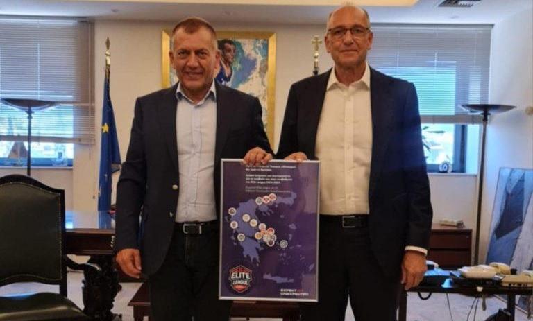 Ο πρόεδρος της ΕΟΚ Βαγγέλης Λιόλιος, ο γενικός διευθυντής Ντίνος Σβερκούνος, ο συντονιστής της Elite League Διονύσης Κάτζος και οι εκπρόσωποι των επτά ομάδων, Κόροιβου, Δόξας Λευκάδας, Πανερυθραϊκού, Ψυχικού, Μεγαρίδας, Βίκου και Εσπερου Λαμίας που ήταν στην κατηγορία όταν άρχισε η συζήτηση, επισκέφτηκαν χθες το Υπουργείο και ήταν παρόντες στη συζήτηση και την ολοκλήρωση της συμφωνίας.