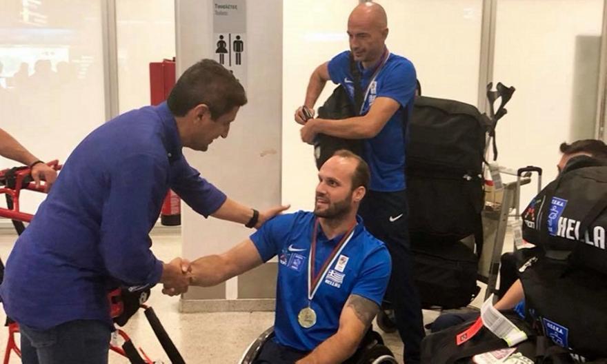 Την Εθνική ομάδα μπάσκετ με Αμαξίδιο, που επέστρεφε από τη Βουλγαρία ως Πρωταθλήτρια Ευρώπης (στην κατηγορία C), υποδέχτηκε στο «Ελευθέριος Βενιζέλος» ο Λευτέρης Αυγενάκης.