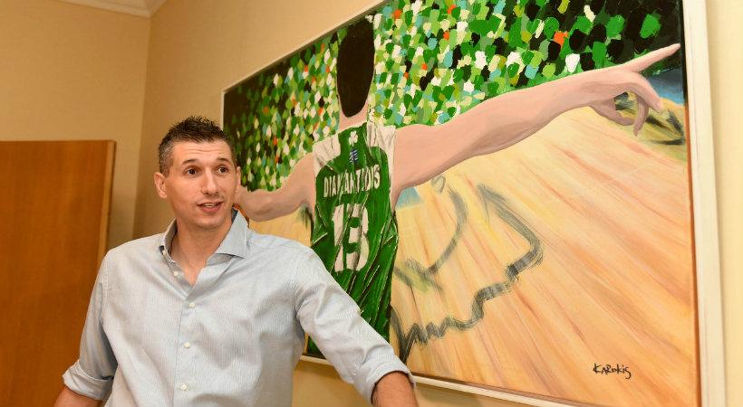 Ο πίνακας με ονομασία «Ομαδικότητα», όπου απεικονίζεται ο Διαμαντίδης στην "ενορχήστρωση" της ομάδας , στο αγαπημένο του Pick 'n' Roll, δημοπρατήθηκε για 4.500 ευρώ στον Δημήτρη Γιαννακόπουλο.