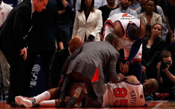 Εξάρθρωση επιγονατίδας και ρήξη συνδέσμων, τραυματισμός που βάζει τέλος στη σεζόν και πιθανώς στην καριέρα του, υπέστη ο Μπαρόν Ντέιβις στην αναμέτρηση των Νικς με το Μαϊάμι. Ο 33χρονος γκαρντ, που έχει ταλαιπωρηθεί πολύ από τραυματισμούς στην καριέρα του, θα μείνει περίπου ένα χρόνο εκτός δράσης.