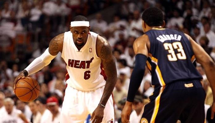 Ο Λεμπρόν Τζέιμς παρέλαβε το βραβείο του MVP και φρόντισε να αποδείξει γιατί το κατέκτησε. Με 32 πόντους, 15 ριμπάουντ και 5 ασίστ και τη βοήθεια του Ντουέιν Ουέιντ που πρόσθεσε 29 πόντους οδήγησε το Μαϊάμι στη νίκη με 95-86 επί των Πέισερς στον πρώτο μεταξύ τους αγώνα για τα ημιτελικά της Ανατολής. Ο Κρις Μπος αποχώρησε στα τέλη του πρώτου μέρους με ενοχλήσεις στους κοιλιακούς και το ματς ήταν ισορροπημένο μέχρι το τέλος της τρίτης περιόδου, αφού η τελευταία ανήκε στους γηπεδούχους. Το δεύτερο ματς της σειράς θα γίνει τα ξημερώματα της Τετάρτης ξανά στο Μαϊάμι.