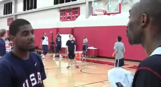 Το λέει η καρδιά του… Ο Κάιρι Ίρβινγκ εμφανίστηκε στην προπόνηση των ΗΠΑ και μπροστά στην κάμερα προσκάλεσε τον Κόμπι Μπράιαντ σε ένα μονό με στοίχημα 50.000 δολάρια, που θα δοθούν από τον χαμένο σε φιλανθρωπική οργάνωση που θα επιλέξει ο νικητής.