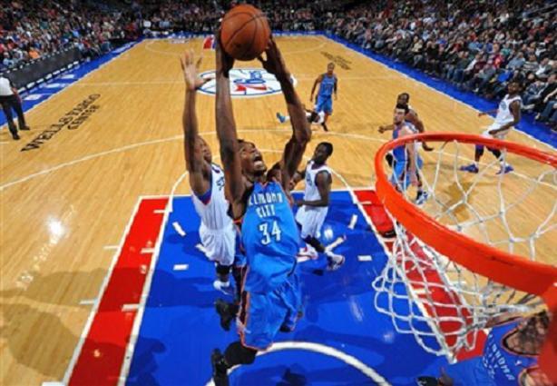 Ο Κέβιν Ντουράντ ήταν συγκλονιστικός και πετυχαίνοντας 37 πόντους, οδήγησε τους Οκλαχόμα Θάντερ στη νίκη με 116-109 επί των Φιλαδέλφια Σίξερς, στην παράταση.