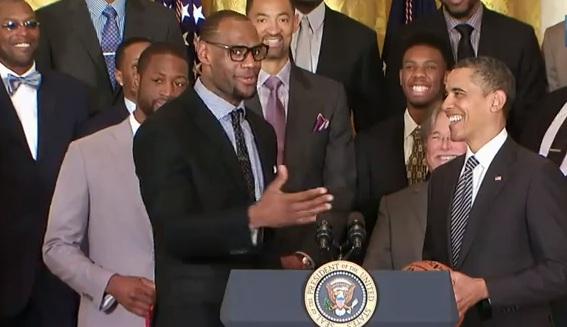 «Μαμά, τα κατάφερα!». Με αυτά τα λόγια ο Λεμπρόν Τζέιμς δεν μπορούσε να κρύψει τον ενθουσιασμό του για την επίσκεψη του Μαϊάμι στο Λευκό Οίκο, όπου τιμήθηκαν από τον Μπαράκ Ομπάμα για την κατάκτηση του πρωταθλήματος. Ο «βασιλιάς» έδειξε ιδιαίτερα αγχωμένος αποκαλώντας τον Αμερικανό πρόεδρο «κόουτς»!