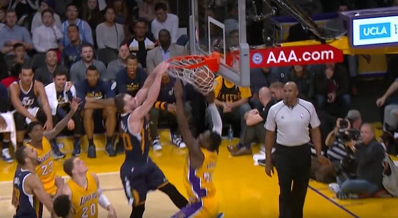 Ο φόργουορντ των Τζαζ έκανε «παπάδες» (31π., 9 ριμπ.) στη νίκη επί των Λέικερς, αλλά πρόσφερε και την κορυφαία φάση της ημέρας καρφώνοντας πάνω σε άμυνα.