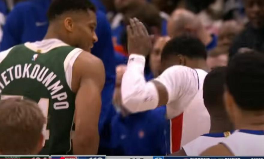 Με ένταση ολοκληρώθηκε η αναμέτρηση των Μπακς κόντρα στους Πίστονς. Με το παιχνίδι στο 124-119 υπέρ των «ελαφιών», ο Γιάννης Αντετοκούνμπο έβγαλε πολύ καλή άμυνα πάνω στον περυσινό συμπαίκτη του, στον οποίο… έκλεισε τα φώτα. Ο «Greek Freak» δανείστηκε τον τρόπο που πανηγυρίζει τα τρίποντα που σημειώνει ο Αμερικανός γκαρντ.