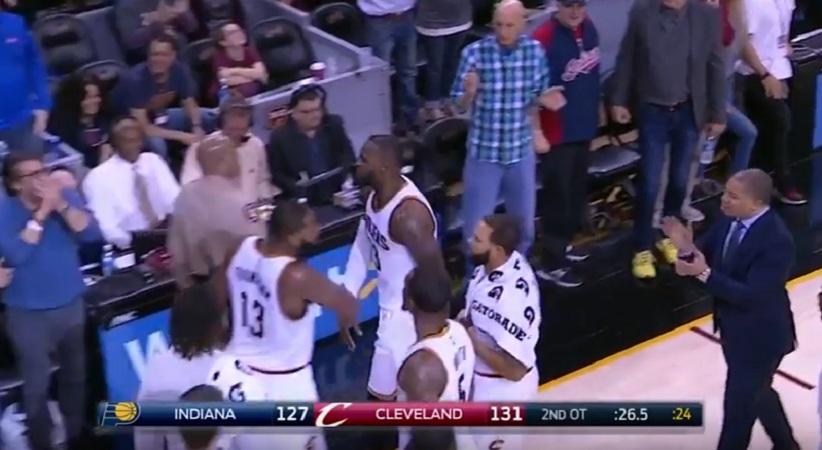 Μετά από ένα καθοριστικό τρίποντο του Κέβιν Λοβ λίγο πριν το τέλος της δεύτερης παράτασης στη νίκη των Καβαλίερς επί των Πέισερς (135-130), ο Λεμπρόν Τζέιμς και ο Τρίσταν Τόμπσον είχαν έναν πολύ έντονο διάλογο.