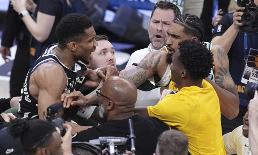 Η εικόνα του Γιάννη Αντετοκούνμπο, λίγα δευτερόλεπτα μετά τη λήξη του αγώνα των Μπακς με τους Πέισερς, να συγκρατείται από μέλη της ομάδας του καθώς φτάνει πρόσωπο με πρόσωπο με τον πατέρα του Ταϊρίς Χαλιμπάρτον, σημάδεψε ένα βράδυ, που θα συζητηθεί πολύ περισσότερο για όσα έγιναν μετά το τελευταίο σφύριγμα παρά για το αποτέλεσμα.