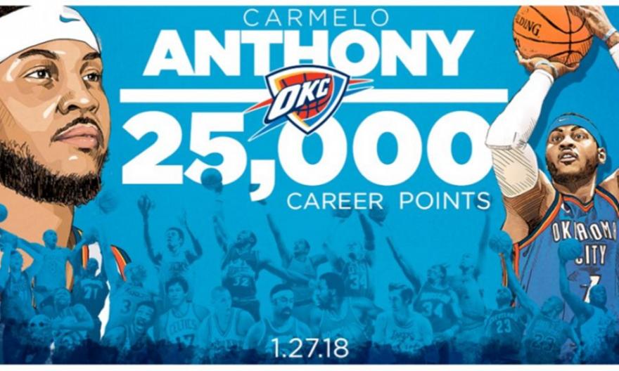 Congrats to @carmeloanthony of the @okcthunder on becoming the 21st player in @NBAHistory to surpass 25,000 career points! #ThisIsWhyWePlay #ThunderUp pic.twitter.com/6xMvPBtV6w