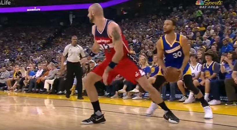 Ο Στεφ Κάρι ζάλισε τον Μάρτσιν Γκορτάτ με τις συνεχείς προσποιήσεις του και κέρδισε όσο χώρο χρειαζόταν για να «μπουμπουνίσει» ένα τρίποντο.