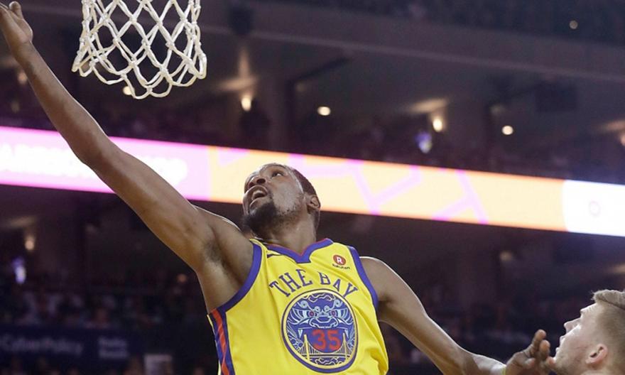 O Kέβιν Ντουράντ πήρε το όπλο του! Με 37 πόντους (10/19 δίποντα, 4/7 τρίποντα), τους 15 στην 4η περίοδο, 11 ριμπάουντ, 4 ασίστ και 4 τάπες οδήγησε τους Γουόριορς στη νίκη με 110-107 επί των Σπερς.