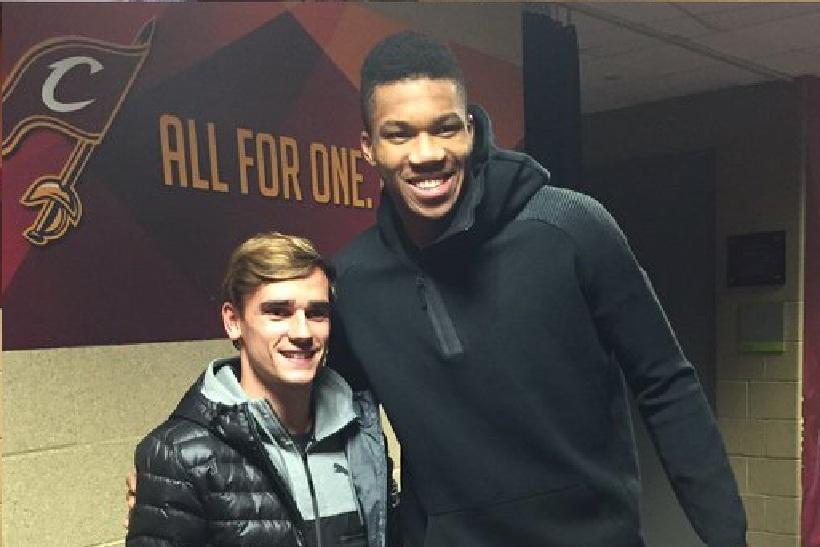 After the game, @ThonMaker14, @Johnhenson31 and @Giannis_An34 met with @antogriezmann of @Athleti and the French National Team!! pic.twitter.com/IxKjJYjmen