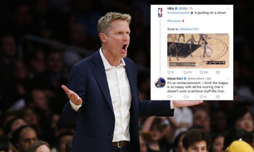 Το ΝΒΑ δεν πρόκειται να τιμωρήσει τελικά τον Στιβ Κερ. Ο προπονητής των Γουόριορς σχολίασε τα βήματα του Τζέιμς Χάρντεν που έμειναν ατιμώρητα σε αγώνα των Ρόκετς με ένα Tweet το οποίο αμέσως διέγραψε.