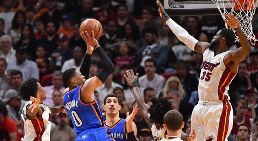 Ο Ράσελ Γουέστμπρουκ συνεχίζει να καταστρατηγεί τη λογική. Οι Θάντερ πέρασαν με 106-94 από το Μαϊάμι και ο ηγέτης τους είχε 29 πόντους, 17 ριμπάουντ και 11 ασίστ καταγράφοντας το 15ο φετινό του τριπλ νταμπλ. Μάλιστα έφτασε τα 30 μέσα στο 2016, κάτι που είχε να συμβεί σε ημερολογιακό έτος από τον Όσκαρ Ρόμπερτσον πριν μισό αιώνα.