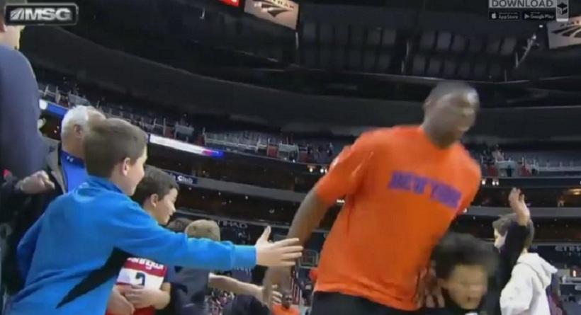 Δείτε πώς ο Κέβιν Σεραφέν κατεδάφισε έναν μπόμπιρα που είχε την «φαεινή» ιδέα να βγει μπροστά στην κάμερα όταν οι Γουίζαρντς βγήκαν για προθέρμανση πριν τον αγώνα με τους Νικς.