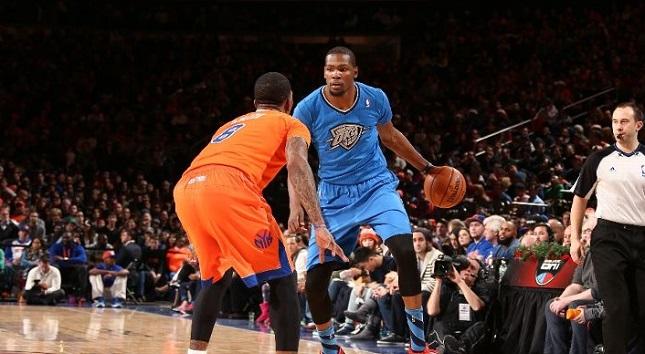 Ο Κέβιν Ντουράντ είχε 29 πόντους σε μόλις 32 λεπτά, ενώ ο Ράσελ Γουέστμπρουκ έκανε τριπλ-νταμπλ με 14 πόντους, 13 ριμπάουντ και 10 ασίστ σε 29 λεπτά. Ο Αμάρε Στούντεμαϊρ με 22 πόντους ήταν ο πρώτος σκόρερ των Νικς, που έπαιξαν χωρίς τους τραυματίες Καρμέλο Άντονι, Μέτα Γουόρλντ Πις και Ρέιμοντ Φέλτον.