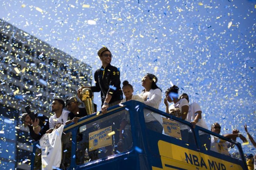 «Βούλιαξαν» οι δρόμοι του Όκλαντ στην παρέλαση για την κατάκτηση του πρωταθλήματος από τους Γουόριορς. Οι νέοι παγκόσμιοι πρωταθλητές επιβιβάστηκαν σε ανοιχτό πούλμαν και γύρισαν από τα κεντρικά σημεία της πόλης, όπου έγιναν αντικείμενα λατρείας από ένα κοινό που περίμενε 40 χρόνια γι’ αυτόν τον τίτλο.