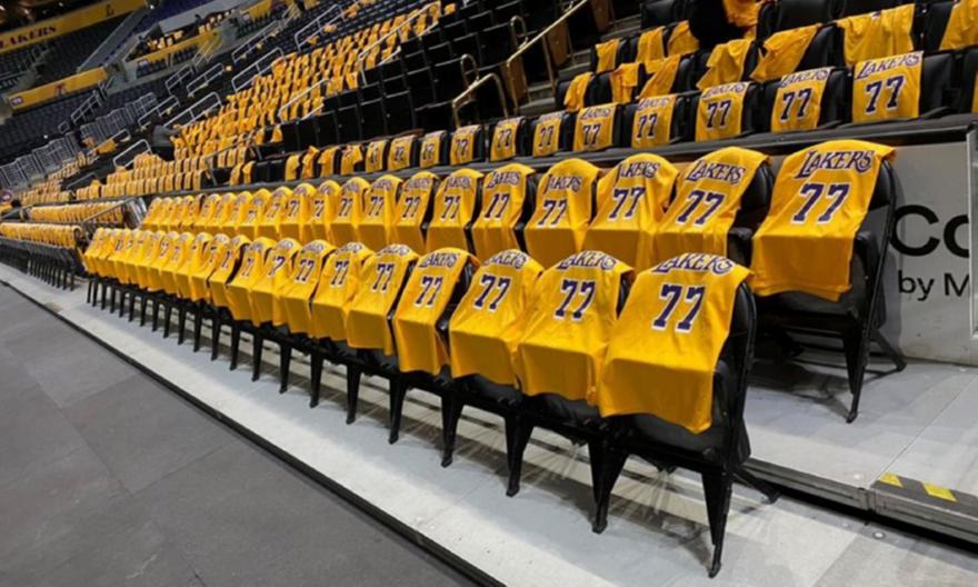 Μάλιστα, οι Λέικερς επιφυλάσσουν μια μεγάλη έκπληξη στους φίλους της ομάδας που θα βρεθούν στην «Crypto.com Arena», καθώς σε κάθε θέση του γηπέδου έχει τοποθετηθεί μια μπλούζα του 25χρονου σούπερ σταρ με το Νο.77!