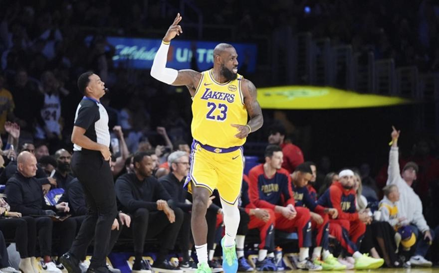 Ο ΛεΜπρόν Τζέιμς τελείωσε με 34 πόντους, στη βραδιά που έγινε ο πρώτος παίκτης στην ιστορία που ξεπερνάει τους 50.000 πόντους σε regular season και playoffs, με τους Λέικερς να διευρύνουν το νικηφόρο σερί τους στα επτά ματς, καθώς επικράτησαν 136-115 των Πέλικανς στο «Crypto.com Arena».