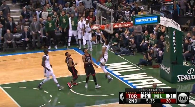 Ακόμη και στη μέτρια βραδιά του, ο Γιάννης Αντετοκούνμπο έχει θέση στο Top 5 χάρη σε ένα εντυπωσιακό κάρφωμα στην ήττα των Μπακς από τους Ράπτορς.