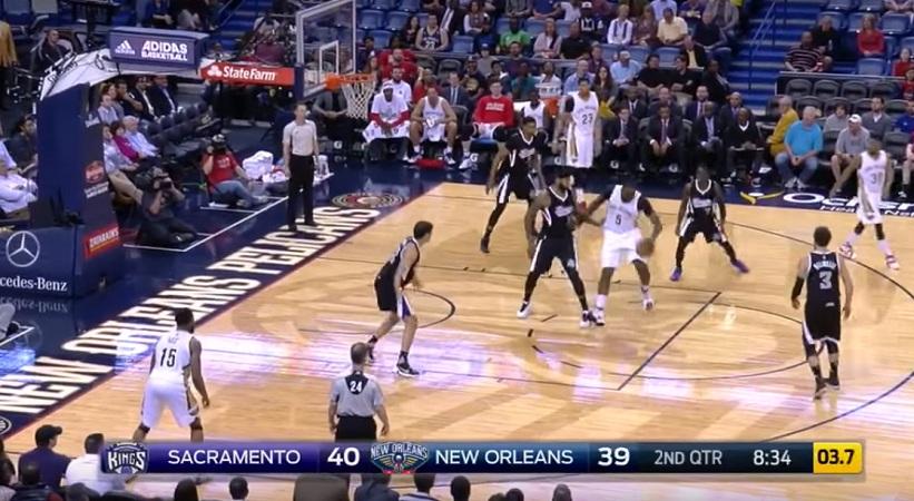 Στον αγώνα των Πέλικανς με τους Κινγκς ο βετεράνος σέντερ κατάφερε να χάσει μόνος του την ισορροπία του.