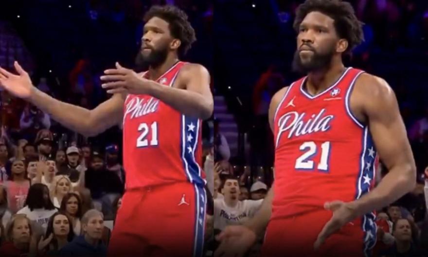 Κατά τη διάρκεια της πρώτης περιόδου, ο σούπερ σταρ των γηπεδούχων, Τζοέλ Εμπίιντ, πέτυχε ένα δύσκολο καλάθι και το πανηγύρισε με μια «άσεμνη χειρονομία».