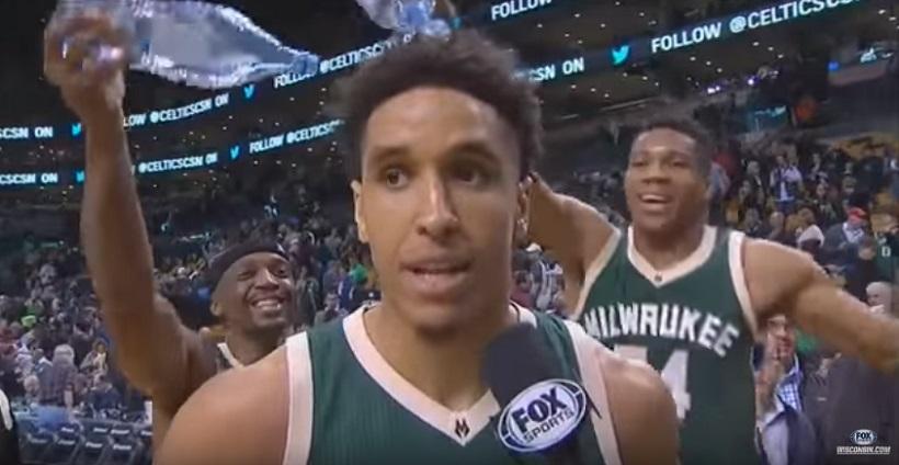 Ο Μάλκολμ Μπρόγκντον ήταν καθοριστικός στη νίκη των Μπακς στη Βοστώνη και αμέσως μετά το τέλος του αγώνα οι συμπαίκτες του ήθελαν να... σβήσουν τον on fire γκαρντ της ομάδας.