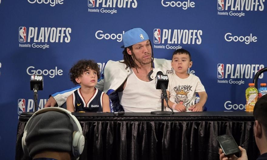 Λίγη ώρα μετά το σουτ της καριέρας του, αυτό που χάρισε στους Νάγκετς τη νίκη επί των Θάντερ (119-121) μέσα στην Οκλαχόμα στο Game 1 των ημιτελικών της Δύσης, ο Άαρον Γκόρντον εμφανίστηκε με την καλύτερη… παρέα στη συνέντευξη Τύπου.