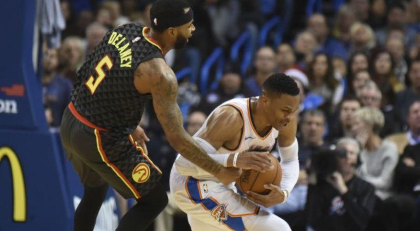 Στην Οκλαχόμα ο Γουέστμπρουκ δεν πραγματοποίησε τριπλ-νταμπλ. Σταμάτησε στους 30 πόντους με 12-17 σουτ, 5/5 βολές και στις 5 ασίστ, ενώ κατέβασε και 7 ριμπάουντ. Καλοί ήταν και οι Άντονι (24π) και Τζορτζ (17π) αλλά άμυνα δεν έπαιξαν ποτέ. Έτσι οι Χοκς, με κορυφαίο τον Μπελινέλι (27 π) το εκμεταλλεύθηκαν, προηγήθηκαν κιόλας στο σκορ και έκαναν θρίλερ το ματς....