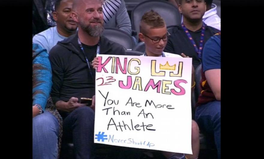 Στις μπροστινές θέσεις που είναι μέσα στο παρκέ, βρισκόταν και ένας νεαρός φίλος του Κλίβελαντ που κρατούσε ένα πλακάτ στο οποίο έλεγε: «Βασιλιά Λεμπρόν Τζέιμς, είσαι κάτι παραπάνω από ένας αθλητής».