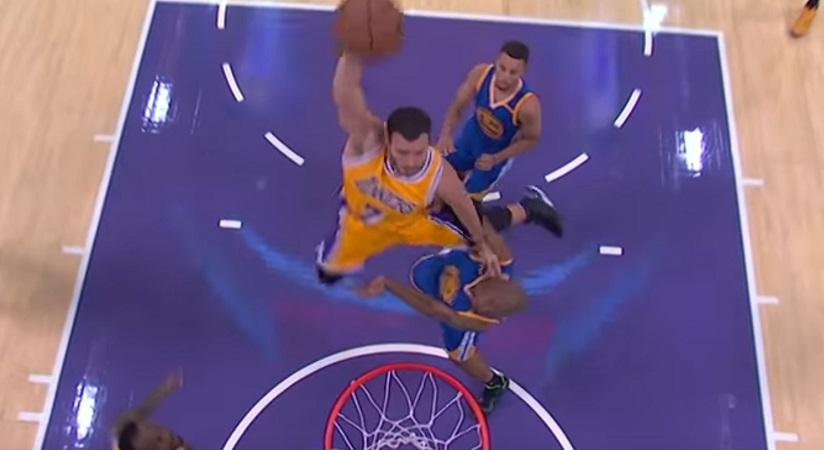 Το... θαυμαστικό στη μεγάλη νίκη των Λέικερς επί των Γουόριορς έβαλε ο Λάρι Νανς Τζούνιορ με το κάρφωμά του, που τον βρήκε πάνω από τους ώμους του Ντέιβιντ Γουέστ και στο νούμερο ένα του Top 10.