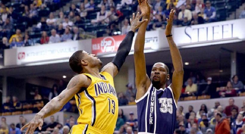 Ο Πολ Τζορτζ έκανε ό,τι μπορούσε, με 45 πόντους, αλλά η Θάντερ πήρε μεγάλη νίκη 115-111 στην Ιντιανάπολις στηριζόμενη και πάλι στο γνωστό δίδυμο. Ο Κέβιν Ντουράντ είχε 33 πόντους, 13 ριμπάουντ και 8 ασίστ, ενώ ο Ράσελ Γουέστμπρουκ κατέγραψε το 14ο φετινό του τριπλ-νταμπλ με 14 πόντους, ισάριθμες ασίστ και 11 ριμπάουντ.