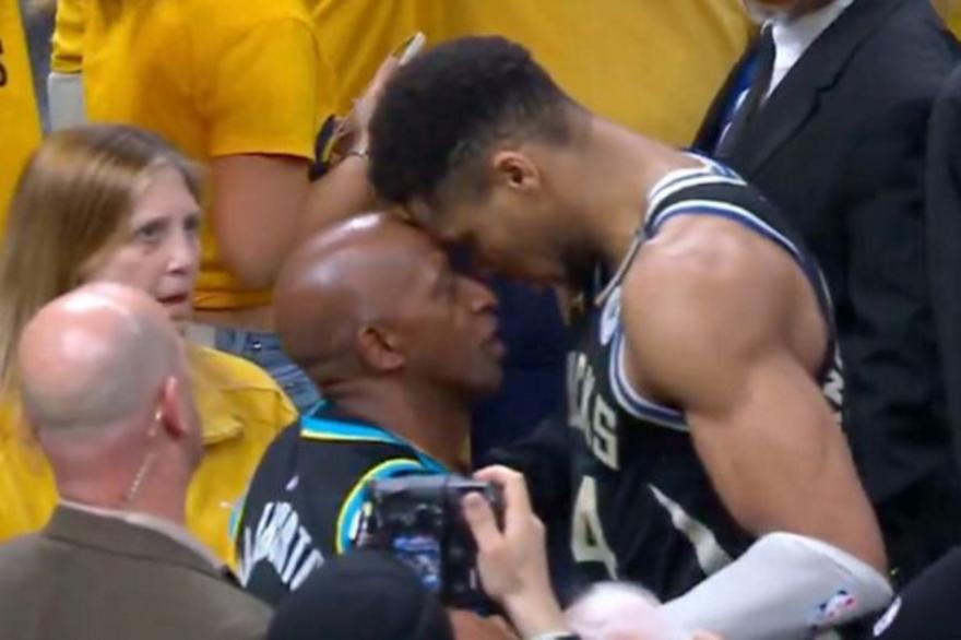 Giannis Antetokounmpo just went face-to-face with Tyrese Haliburton’s father after the Bucks were eliminated in Game 5.